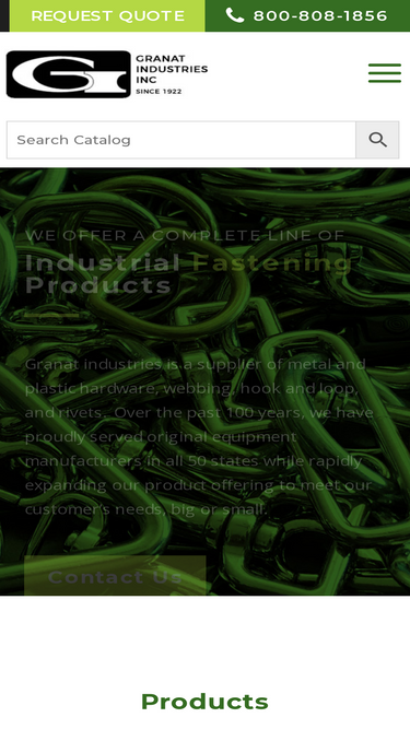 88%Granat Industries, Inc. offers metal hardware, plastic buckles, webbing, hook & loop, case hardware, sewing thread and other textile products.