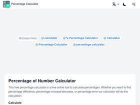 75%this free percentage calculator is a free online tool to calculate percentages. whether you want to find percentage difference, percentage increase/decrease, or percentage error our calculator will do the calculation.
