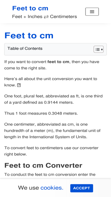 74%To convert feet to cm you can make use of our converter or use the formula. We also have a table with common values.