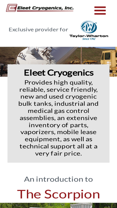 92%eleet cryogenics provides high quality, reliable, service friendly, new and used cryogenic bulk tanks, taylor-wharton tanks, industrial and medical gas control assemblies, an extensive inventory of parts, vaporizers, mobile lease equipment, as well as technical support all at a very fair price.