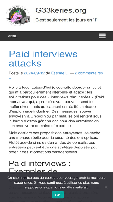 Site d'actualité geek et technique avec la sécurité informatique pour sujet principal. Au menu : Actualités, tutoriels, challenge SSI, vidéos, etc.