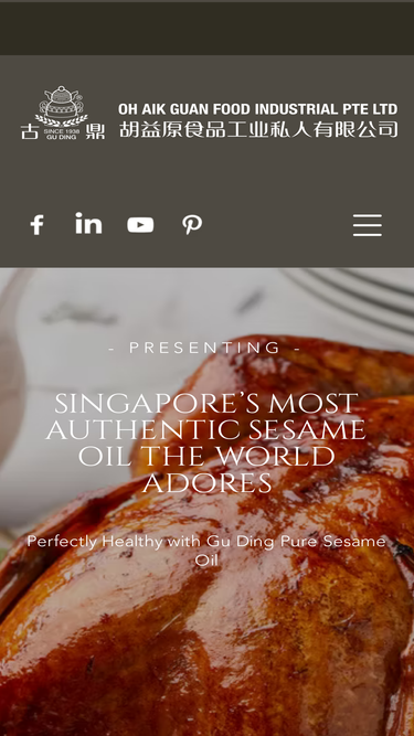 97%Perfecting pure sesame oil since 1938. A key manufacturer in the global sesame oil market, Oh Aik Guan promises a quality fragrant sesame oil that is truly authentic. Our flagship brand, Gu Ding, is well-adored internationally for its intensely fragrant sesame oil and health benefits.