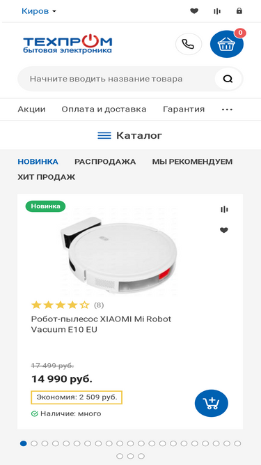 60%Интернет-магазин Техпром – это удобный способ делать покупки, не выходя из дома. - полный каталог товаров; - акции, скидки и приятные цены; - информация о наличии товаров в вашем городе; - удобный заказ товара; - онлайн консультация опытного менеджера; - доставка до двери или в ближайший к вам магазин Техпром.