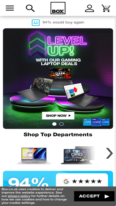 84%the online technology store - technology & gaming products all at low prices. free delivery on most orders. 97% of customers would buy again from box.co.uk