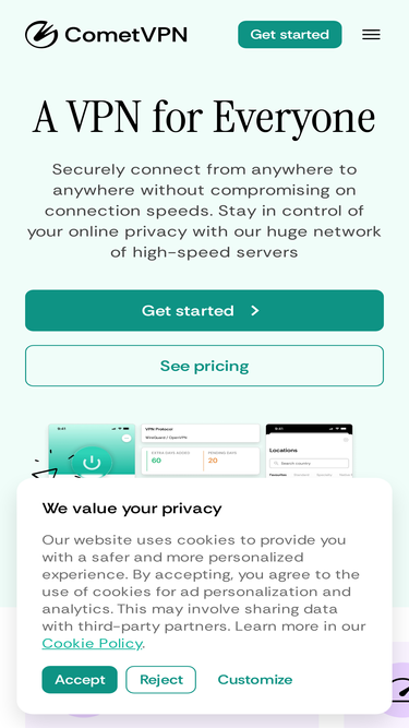 81%Get CometVPN for Android devices and learn more about our features and server pool