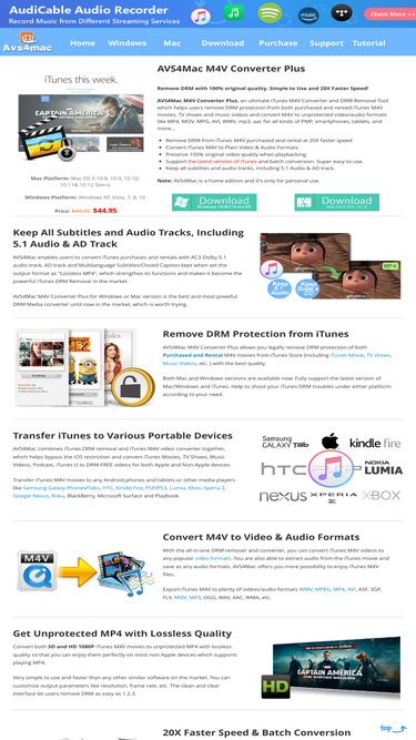 62%avs4mac offers you best mac and windows solution for converting itunes movies and tv show of both purhcased and rental to drm-free video/audio for non-apple devices.