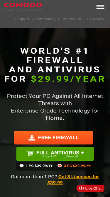 Comodo Firewall is a network security system that monitors and controls the network traffic based on predetermined security rules. Get now for $29.99/Year.