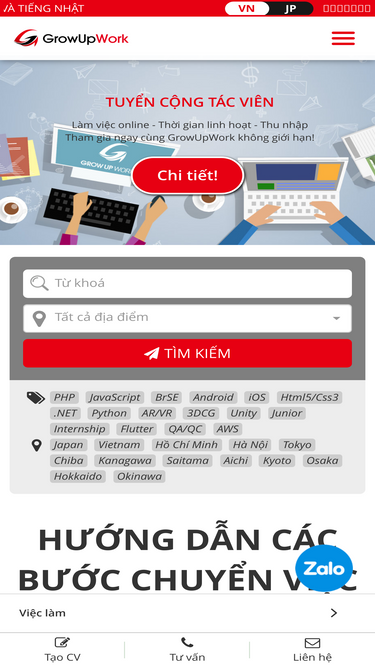 78%Mạng tìm kiếm việc làm chuyên ngành IT và việc làm tiếng Nhật, đăng tin tuyển dụng miễn phí tại GrowUpWork.com