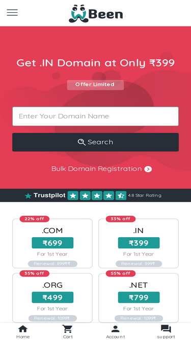 92%Buy a cheap Domain Name, .com domain in india, Buy Domains at ₹99, .COM for sale, new .com domain offer