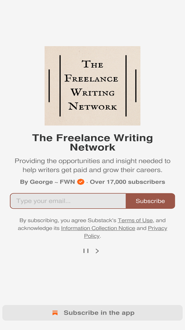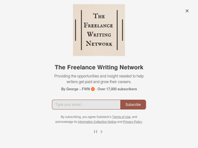 88%Providing the opportunities and insight needed to help writers get paid and grow their careers. Click to read The Freelance Writing Network, by George ~ FWN, a Substack publication with tens of thousands of subscribers.