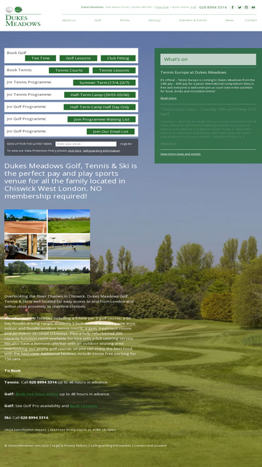 93%Dukes Meadows is the home of Tennis, Golf and Ski. Located in Chiswick, West London, we are a premier pay and play facility.
