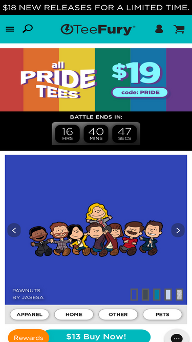 80%Immerse yourself in a world of pop culture with ShirtPunch's exclusive collection of limited edition t-shirts! From horror to anime, fandom to fan-art, movies to video games – discover daily designs that blend creativity and nostalgia. New shirts - every day - only $13.