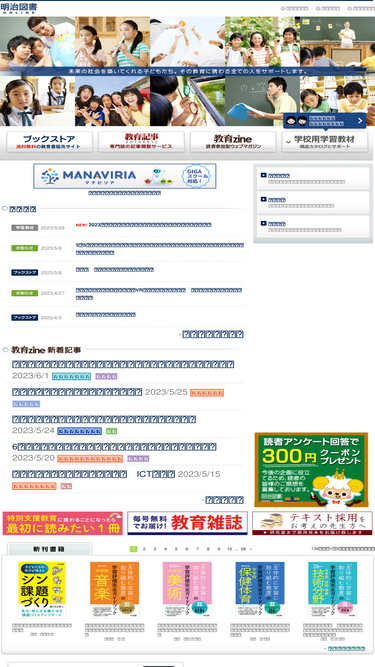 92%1909(明治42)年創業。「教育と文化を通じて人づくり」を企業理念とし,新しい時代に挑戦する個性的,創造的な人材の育成を目指す。小・中・高等学校の教科書発行部数で業界首位。学習教材・指導用教材,学習参考書を発行。デジタル教科書など教育用デジタルコンテンツの開発・販売,教育総合ポータルサイト運営などのインターネットサービス,学力・体力テストなどの各種評価事業,一般書籍・辞典等の出版に加え,日本語検定関連業務も行っている。また、日本で最初の教科書図書館「東書文庫」を附設、所蔵資料約16万点のうち76,420点が国の重要文化財に指定されている。