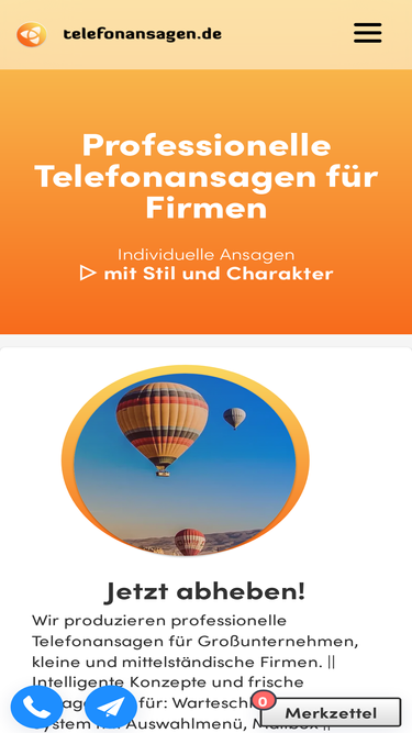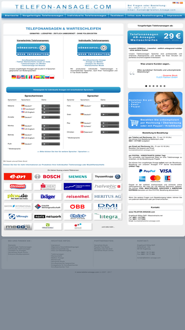 87%Telefonansagen, AB-Ansagen, Warteschleifen, Mailboxansagen. Individuelle Produktionen – gratis Musik.