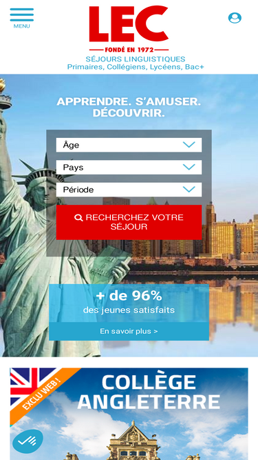 85%Organisateur de séjour linguistique depuis plus de 50 ans. LEC propose des séjours à partir de 8 ans en Angleterre, Allemagne, Espagne, Irlande, Malte, Canada, USA, Ecosse. Trouvez également votre Summer Camp d'Anglais en France.