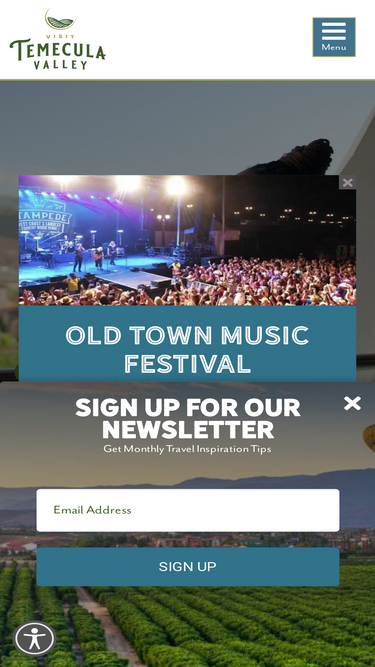 98%Nestled between the coast and mountains, you’ll find vine-draped hills, panoramic views and warm, welcoming people in Temecula Valley. Central to San Diego, Los Angeles and Orange County, Temecula wine country boasts 33,000 acres and 47 wineries, each offering a unique, memorable experience and pouring exceptional wines. Between sips, enjoy award-winning food, live music, winery tours, spa treatments, and more. Raise your glass to Temecula—Southern California’s premier wine region.