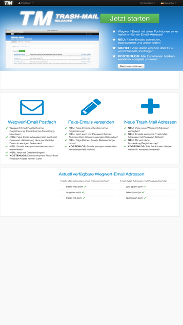 99%wegwerf-email adresse zum versenden und empfangen von einmal-email nachrichten. kostenlose fake-email adressen mit dateianhängen abrufen und verschicken. keine registrierung der trash-mail adresse notwendig.