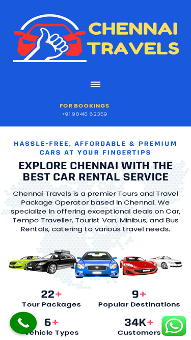 85%Call Chennai Travels ☎️75500 78781 | ☎️75500 78782 or 📥 email to contact@chennaitravels.in for your travel and tour requirements from Chennai.