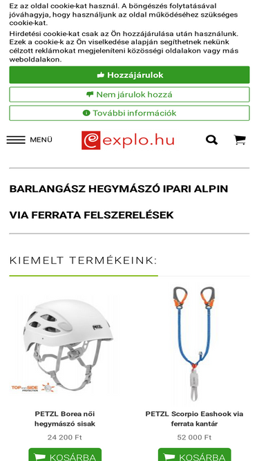 79%Explo.hu online áruház: hegymászó, barlangász, via ferrata, ipari alpin felszerelés