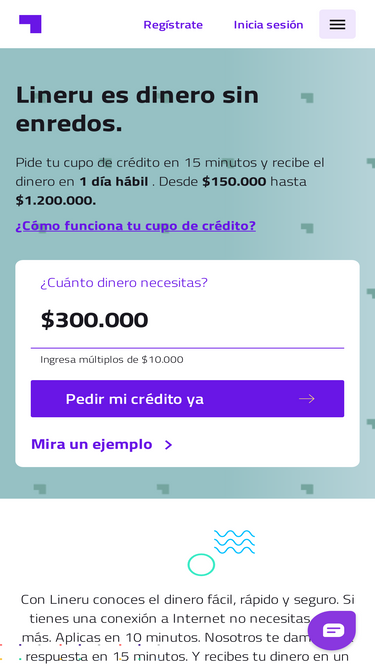 80%En Lineru puedes pedir dinero prestado. Mejorar tu perfil crediticio. E impulsar tu vida financiera. Aplica ya. Y recibe respuesta en menos de 15 minutos.