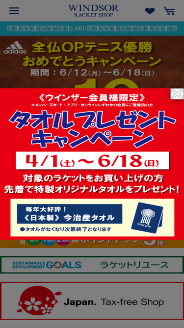 89%ウインザー ポイント5倍デー 世界のテニスが集まる店 ウインザーラケットショップのホームページです。イベントの告知、テニスラケット・テニスシューズお買い得商品の情報などお得な情報が満載です。