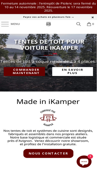85%Bienvenue chez iKamper France! Fans de voyages, de nature, et d'aventures? Nos tentes de toit Skycamp et X-Cover sont disponibles pour vos prochaines aventures!