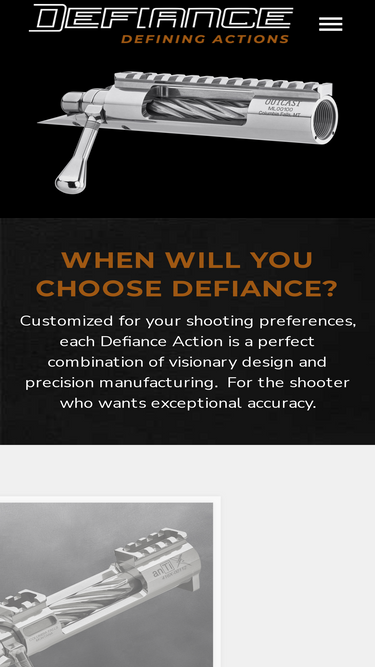 Experience the Defiance Difference Smoother Feel With Reliable Repeatability Shop Now Shop Ready To Ship Actions Tactical Hunting Competition Browse All Actions Options that Matter Most action manufacturers give you a single standard configuration available in short and