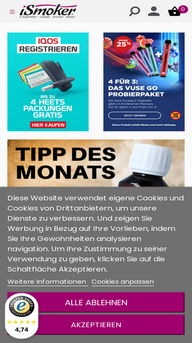 89%E-Zigarette und E-Liquid im iSmoker® Online Shop günstig kaufen ➤ Top Auswahl ✓ Blitzversand ✓ Beratung + Support ✓