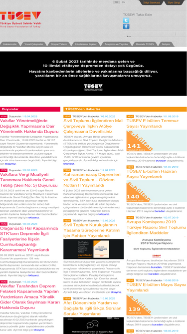 23%Türkiye Üçüncü Sektör Vakfı (TÜSEV), Türkiye'de daha güçlü, katılımcı ve itibarlı bir sivil toplum için çalışmalarını sürdürmektedir.