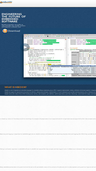 71%the website of mbeddr, a set of integrated and extensible languages for embedded software engineering, plus an ide with refatorings, a debugger and verification tools.
