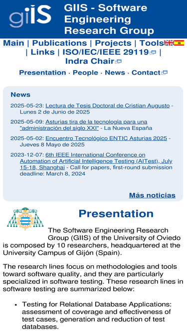 77%research group main page. links to publications, projects and tools for software testing. software engineering research group (giis) - test4data
