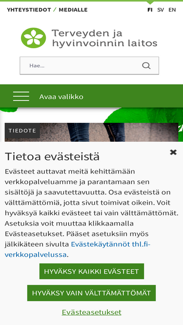 100%Ajankohtaisten uutisten lisäksi löydät täältä muun muassa THL:n blogit ja muut sosiaalisen median kanavat, tapahtumakalenterin sekä pressihuoneen.