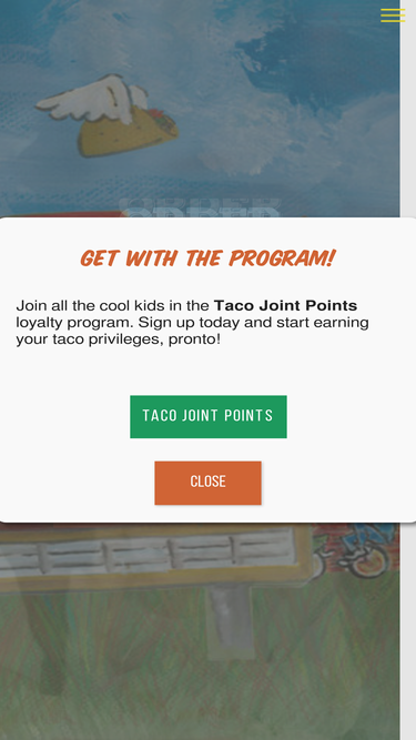 92%Taco Joint Addison extends a loyalty program, "Taco Joint Points," to customers across Texas. Earn points to redeem it in any of our locations. Register today!