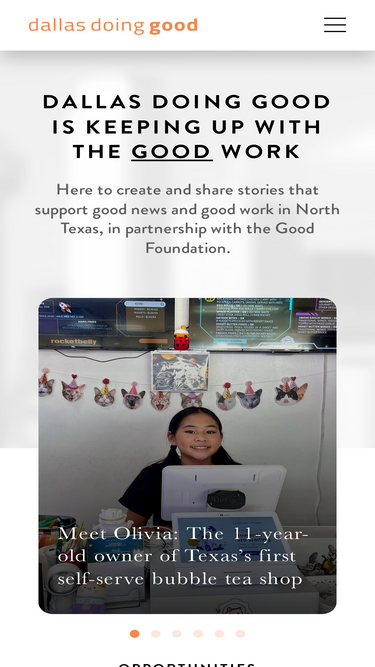 73%Here to create and share stories that support good news and good work in Dallas-Fort Worth, in partnership with the Good Foundation.