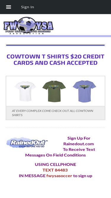 100%ALL FWYSA FAMILIES NEED TO BE SIGNED UP FOR FWYSA WEATHER TEXT THIS WILL NOTIFY ANY CHANGES FOR BENBROOK SOCCER AND WESTSIDE SOCCER COMPLEXES. TEXT 84483 THEN TYPE fwysasoccer send