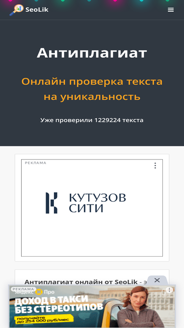 90%Проверка текста на антиплагиат бесплатно и без регистрации любого большого объема без ограничений по символам, проверка на использование ИИ, нейросетей, некачественного рерайта и перефразирования.
