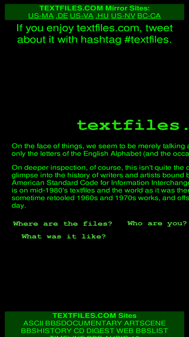 The Top 10 Sites Like textfiles.com in November 2025 are ranked by their affinity to textfiles.com in terms of keyword traffic, audience targeting, and market overlap
