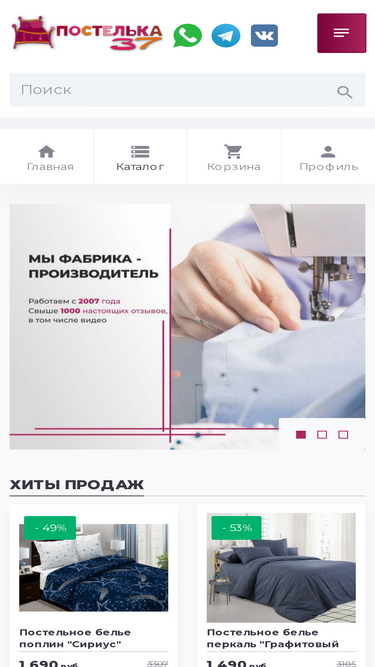 95%ищете где приобрести ивановский текстиль в иваново? ☛ «постелька37» - это огромный ассортимент постельного белья из натурального хлопка и низкие цены от 990 р. от фабрики! ☛ в нашем интернет-магазине вы можете купить качественное постельное белье с простыней на резинке в комплекте с наволочками (в том числе с увеличенной плотностью), а также одеяла, подушки, матрасы и другой домашний текстиль в иваново оптом и в розницу! ☛ доставка из иваново по всей россии!