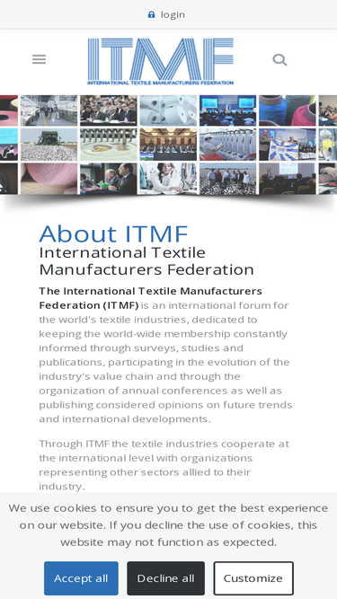 85%the international textile manufacturers federation (itmf) is an international forum for the world's textile industries, dedicated to keeping the world-wide membership constantly informed through surveys, studies and publications, participating in the evolution of the industry's value chain and through the organization of annual conferences as well as publishing considered opinions on future trends and international developments.