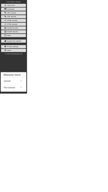 77%text online viewer. a simple text viewer similar to a notepad. additional functions: url encode, url decode, html encode, html decode, base64 encode and base64 decode
