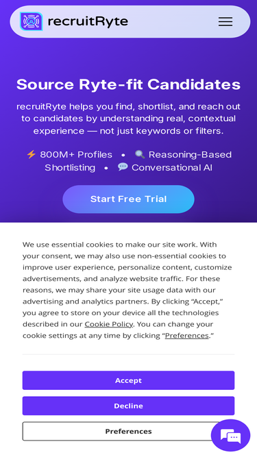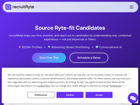 82%Explore RecruitRyte, the best free AI recruitment tool and hiring platform for candidate sourcing that helps recruiters in the talent acquisition process.
