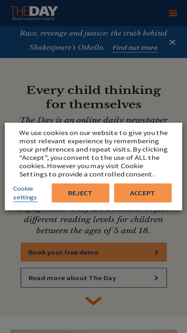 83%The Day is a leading digital literacy resource providing schools with daily, unbiased current affairs to boost literacy, critical thinking, and debate. Plus, we produce ready-to-use PSHCE lessons linked to the real world, giving teachers the confidence to address sensitive topics. We are independent, write all our own content, and were endorsed by the UK's Department for Education during Covid.