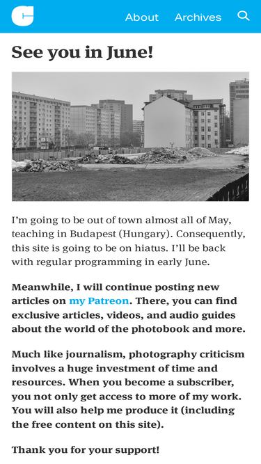 Jörg Colberg's online photography magazine, featuring photographer profiles, interviews, articles, and book reviews.
