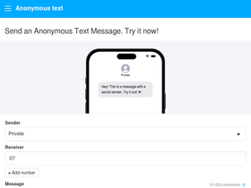 89%send an sms completely anonymously. pull a prank with your friends or send your loved one a secret message. choose the time and sender yourself! with delivery receipt.