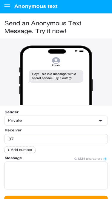 100%send an sms completely anonymously. pull a prank with your friends or send your loved one a secret message. choose the time and sender yourself! with delivery receipt.