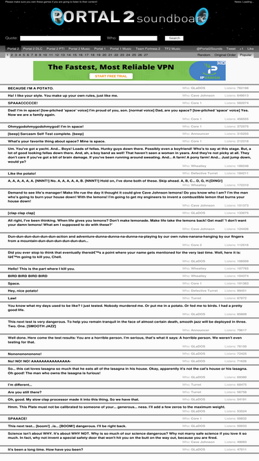 A Portal 2 Soundboard containing all in-game quotes and dialog.