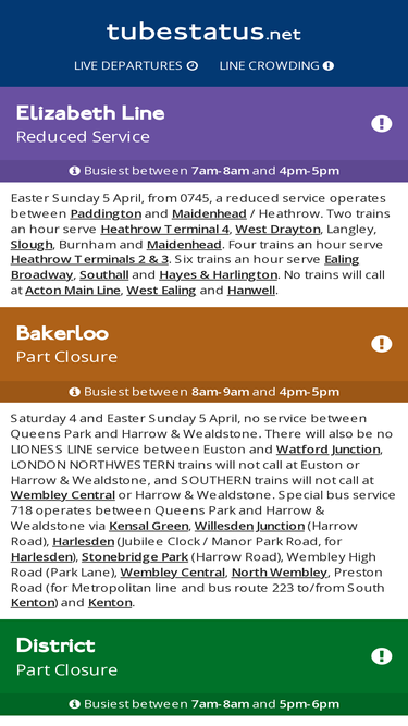 82%live london underground status updates to help you plan your journey. includes live departure boards, information on quiet / busy periods for social distancing, free email alerts, plus statistics on line reliability