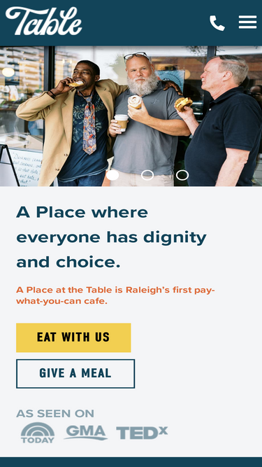 99%A Place at the Table is a cafe that provides community and healthy food for all regardless of means. Serving Breakfast and Lunch all day.