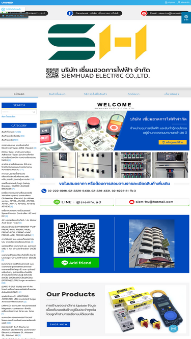 88%ตัวแทนจำหน่ายอุปกรณ์ไฟฟ้า และอิเล็คทรอนิคต่างๆ จากผู้ผลิตชั้นนำ ใช้ในระบบจ่ายไฟฟ้า อุปกรณ์คอลโทรล ในโรงงานอุตสาหกรรม อุปกรณ์ ไฟฟ้าแสงสว่างที่ใช้ในบ้านเรือน ต่างๆเช่น เบรคเกอร์ อุปกรณ์ ตู้ควบคุมมอเตอร์ ต่างๆเช่น Magnetic Contactor, Overload Relay, Manual Moter Starter และ Motor breaker อุปกรณ์ ควบคุมต่างฯ เพื่อใช้ในการซ่อมบำรุงเครื่องจักร อุปกรณ์ ปรับรอบมอเตอร์ อุปกรณ์ ไฟฟ้าแสงสว่าง สายไฟฟ้า ท่อร้อยสายไฟฟ้า อุปกรณ์ติดตั้งระบบไฟฟ้า coupling, Connector, bushing, locknut อุปกรณ์ ตู้สวิทส์บอร์ด ตู้เหล็ก ตู้พีวีซี ตู้ Stainless เครื่องมือและอุปกรณ์สำหรับช่างต่างๆ คีมย้ำหางปลา, คีมหางปลาไฮโดรลิค หมวกนิรภัย, รองเท้าเซฟตี้, ถุงมือกันไฟฟ้าแรงสูง Multi-meter, Insulution tester