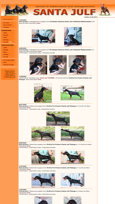 99%news of kennel santa julf, stpeterburg, ussia / новости питомника santa julf, продаются щенки добермана, щенки добермана, щенки цвергпинчера, питомник цвергпинчеров и добеманов